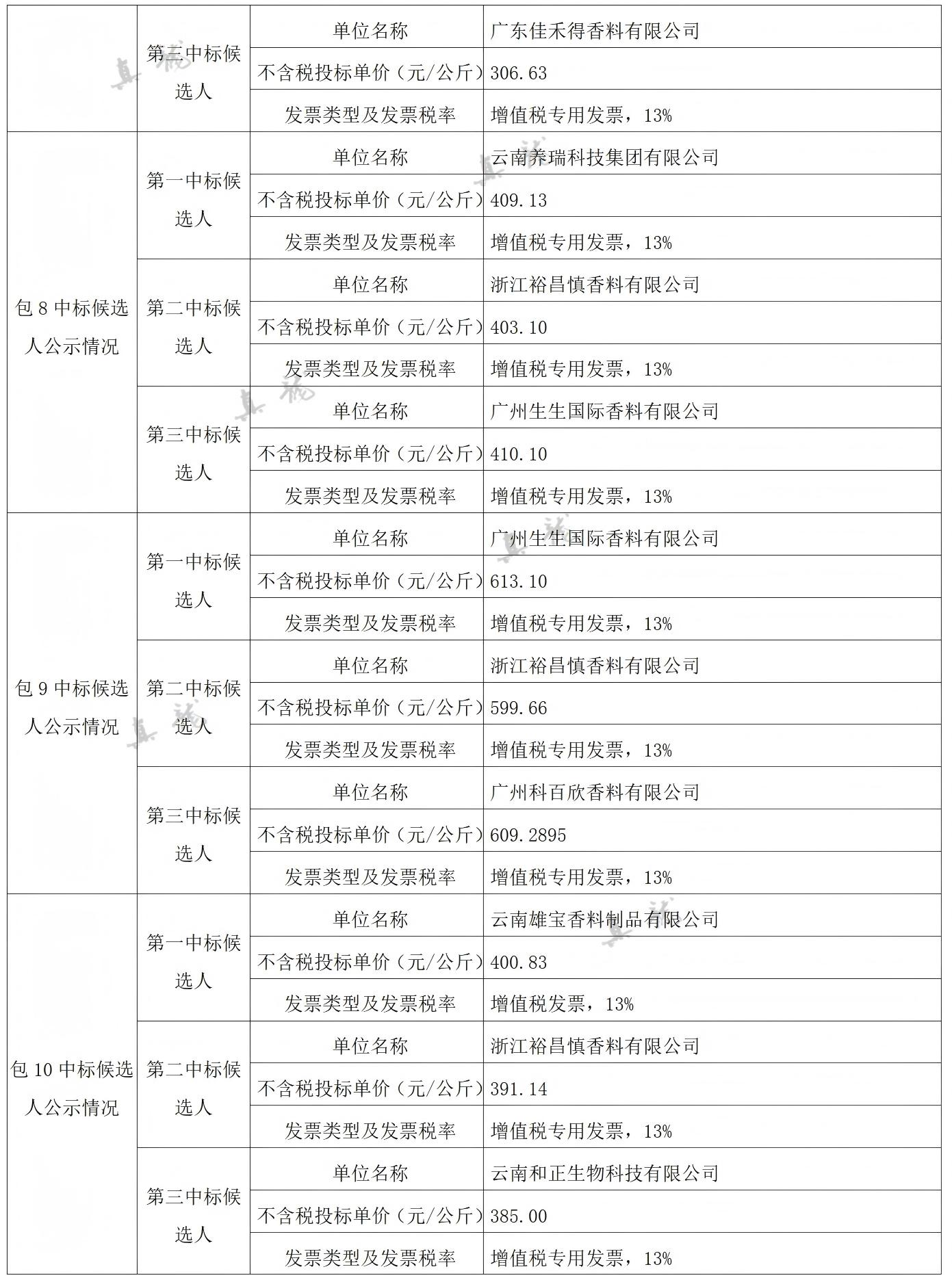 廣西中煙工業(yè)有限責(zé)任公司2026-2028年自主品牌香精香料采購(gòu)之復(fù)合體采購(gòu)第一批(項(xiàng)目編號(hào):B202501BA2001767947560)中標(biāo)候選人公示